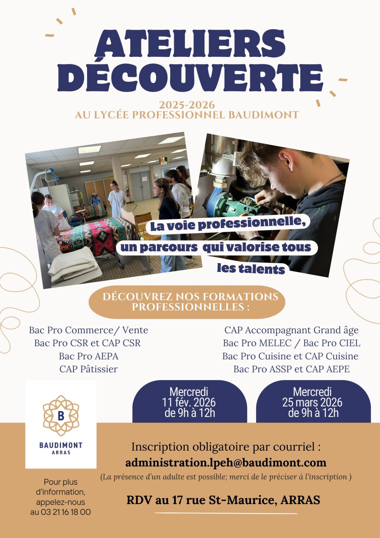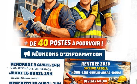 Le GEIQ BTP HDF souhaite recruter plus de 40 apprentis en Maçonnerie Gros oeuvre pour la rentrée de septembre 2026 sur les secteurs d’Arras, Lens, Bethune, Cambrai et Henin Beaumont. C’est pourquoi, le GEIQ BTP HDF organise des séances d’information à destination des jeunes souhaitant entrer en apprentissage sur ces métiers. Au programme: présentation du GEIQ BTP HDF, Quizz sur les métiers du Gros oeuvre, vidéo de présentation d’un chantier gros oeuvre, échange questions-réponses avec les participants, etc. Pour toutes demandes d’informations : mnelisse@geiqbtphdf.fr Inscription obligatoire en scannant le QR code de l’affiche ou par mail mnelisse@geiqbtphdf.fr