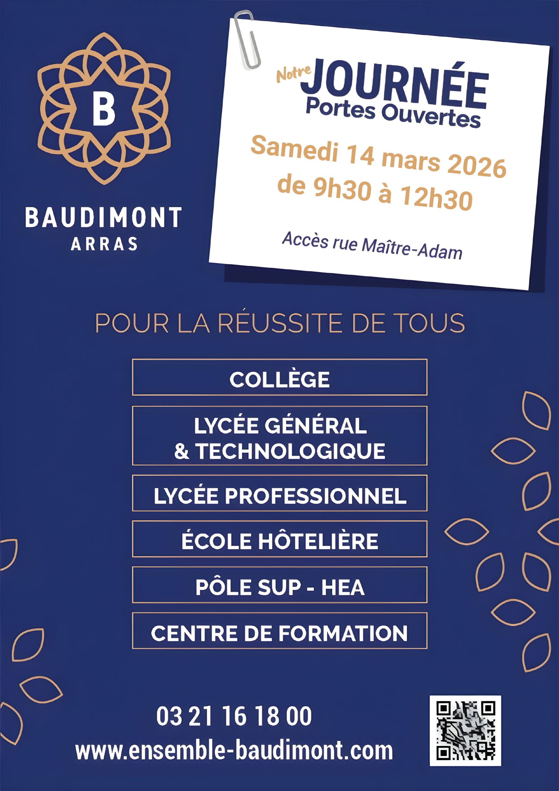 🎓Baudimont Arras vous invite à sa journée portes ouvertes 📅Samedi 14 mars 2026 - De 9h30 à 12h30 ⭐Un cadre bienveillant et exigeant pour permettre à chaque jeune d'exprimer son potentiel. A Baudimont, nous mettons tout en œuvre pour que chaque élève soit accompagné selon ses besoins et ambitions. 🔎De la sixième au Master, découvrez […]