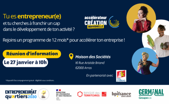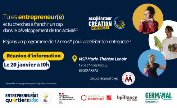 L’Accélérateur Création Individuelle est un dispositif d’accompagnement d’un an, proposé par Germinal, destiné aux entrepreneurs immatriculés depuis moins de 3 ans, domiciliés ou implantés en QPV. Les 6 premiers mois du programme sont composés d’ateliers collectifs, à raison d’une journée par semaine, durant lesquels nous travaillons la stratégie de communication, la prospection commerciale, le marketing, les aspects administratifs et financiers … bref, l’ensemble des compétences nécessaires à un entrepreneur, en complément de son cœur de métier. Germinal constitue actuellement un groupe de 15 entrepreneurs pour un démarrage courant février