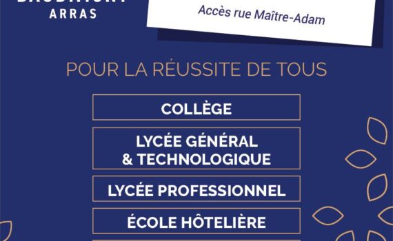En lien avec la cité des Métiers, venez découvrir toutes nos unités pédagogiques : Collège, Lycée général et technologique, Lycée professionnel, Ecole hôtelière, Centre de Formation et Pôle d’enseignement Supérieur Accueil Rue Maître ADAM à Arras (sauf pour le collège : Rue du Bloc) Nous vous accueillerons pour vous faire découvrir nos installations, nos équipes pédagogiques et tout vous dire sur Baudimont. Toutes les formations seront représentées par nos responsables qui seront ravis d’orienter et de guider les jeunes.